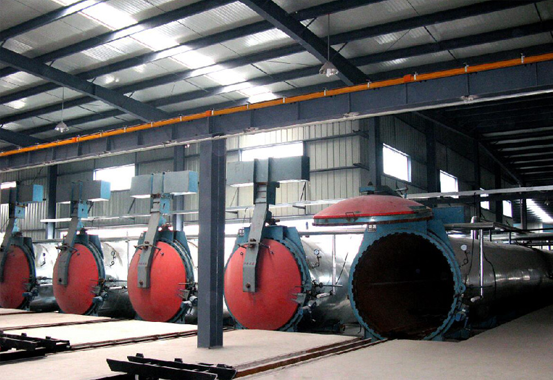 在加氣線中,切割好的坯體,進(jìn)入蒸壓釜進(jìn)行蒸養(yǎng),使磚達(dá)到一定的硬度。